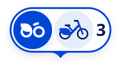 This is what individual bikes look like on the map. Depending on the system, they may be different colours. Additional symbols for e-bikes or cargo bikes are possible depending on the system.